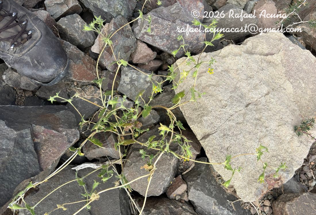 | Sinónimos: Loasa aphanantha Urb. & Gilg, Loasa parviflora Phil., hom. illeg., Loasa insons Poepp. var. prostrata, Loasa barneoudii Gay, Loasa subandina F. Phil., | |