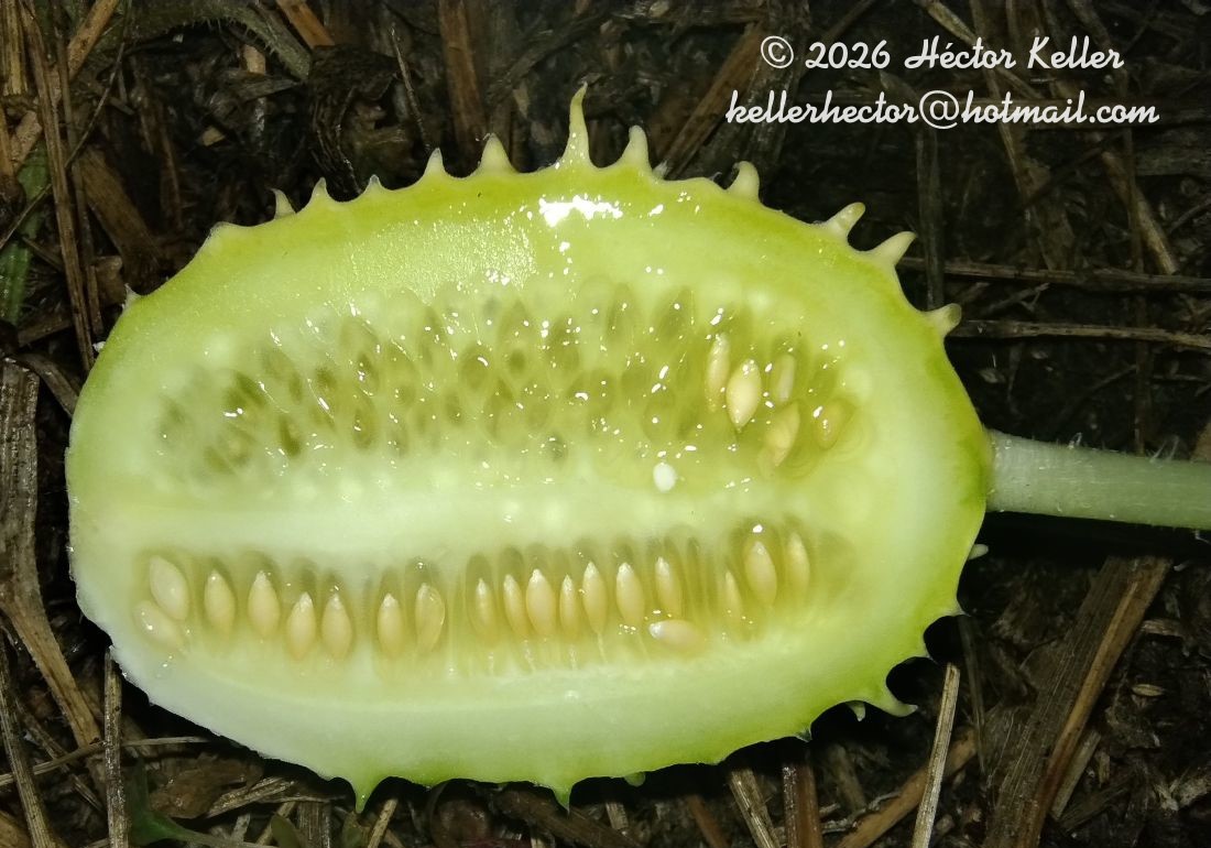 | Sinónimos: Cucumis anguria L. var. longipes, Cucumis angurioides M. Roem., Cucumis arada L. ex Naudin & F. Muell., Cucumis echinatus Moench, nom. illeg., Cucumis longipes Hook. f., Cucumis parviflorus Salisb., nom. superfl., Cucumis anguria Vell., hom. illeg., |